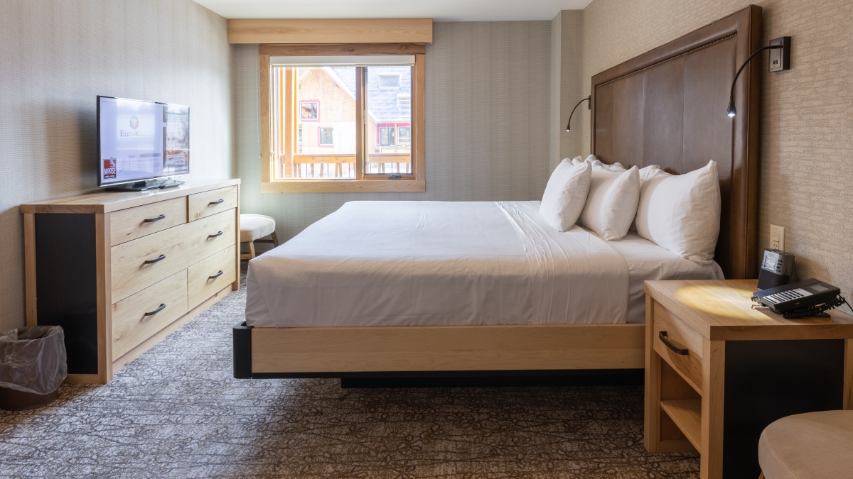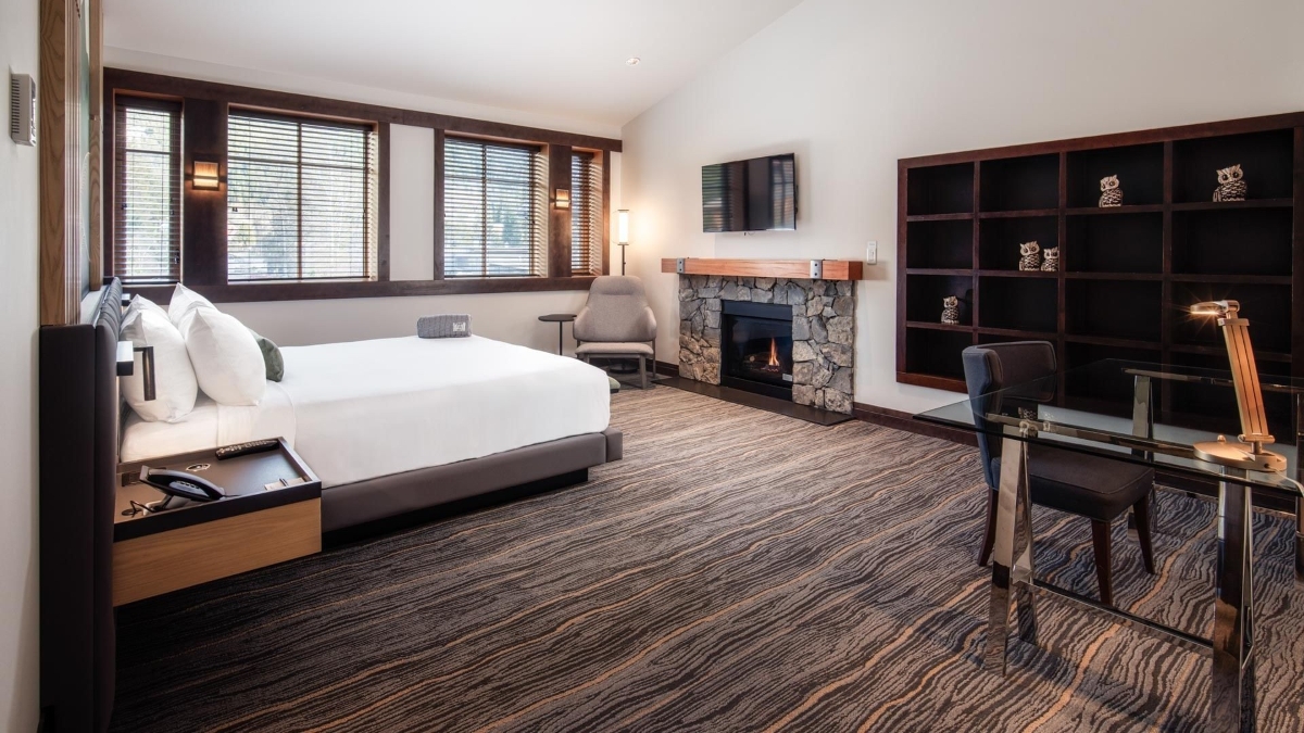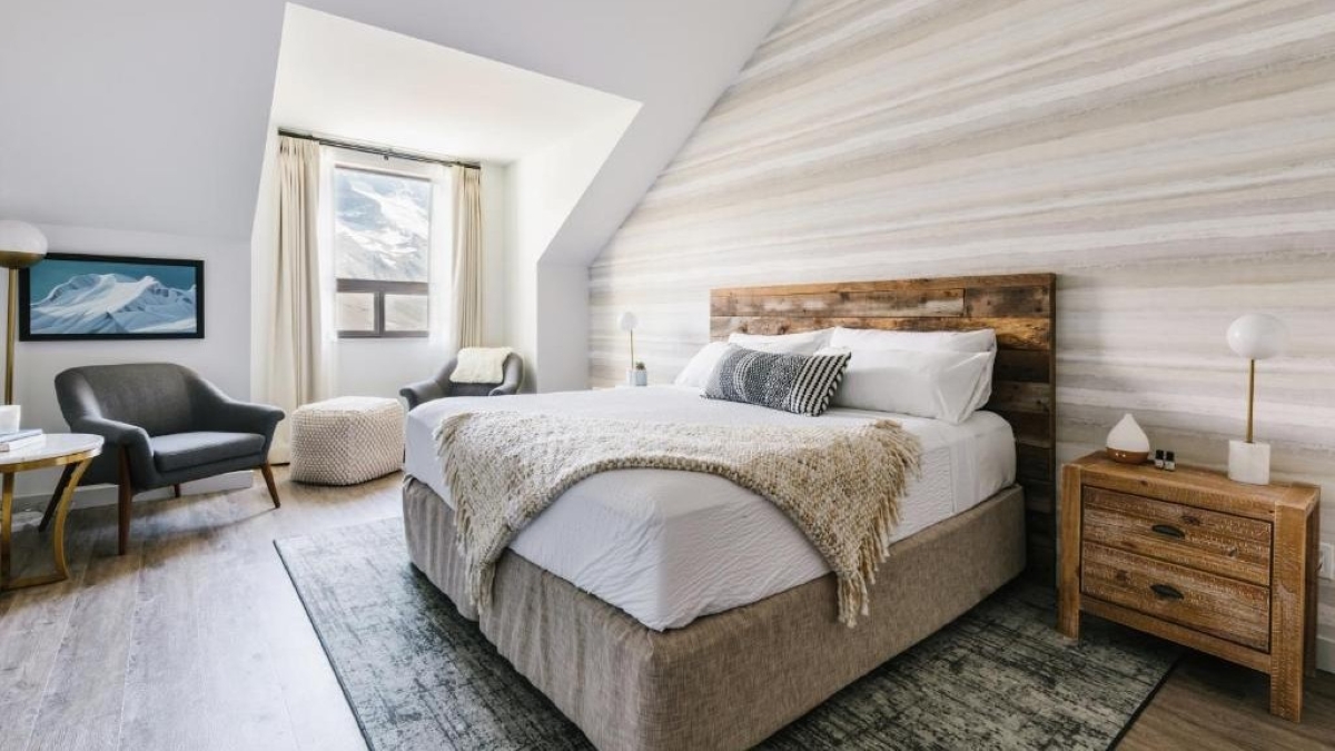 U verblijft drie nachten inclusief ontbijt in Moose Hotel & Suites, een stijlvol en comfortabel hotel met rooftop hot pools en een warme alpine sfeer — ideaal voor een ontspannen afsluiting van deze indrukwekkende reis.