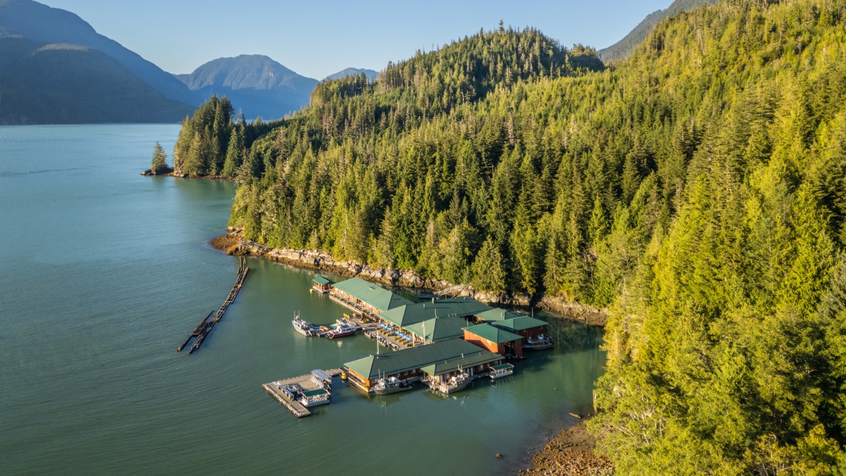 Na uw verblijf aan de ruige Pacifische kust laat u Vancouver Island achter u en reist u verder richting Campbell River, waar u per watervliegtuig diep de ongerepte fjorden van British Columbia invliegt. Vanuit de lucht ontvouwt zich een spectaculair landschap van steile bergwanden, dichte regenwouden en stille inlets — een eerste indruk van hoe afgelegen deze plek werkelijk is.