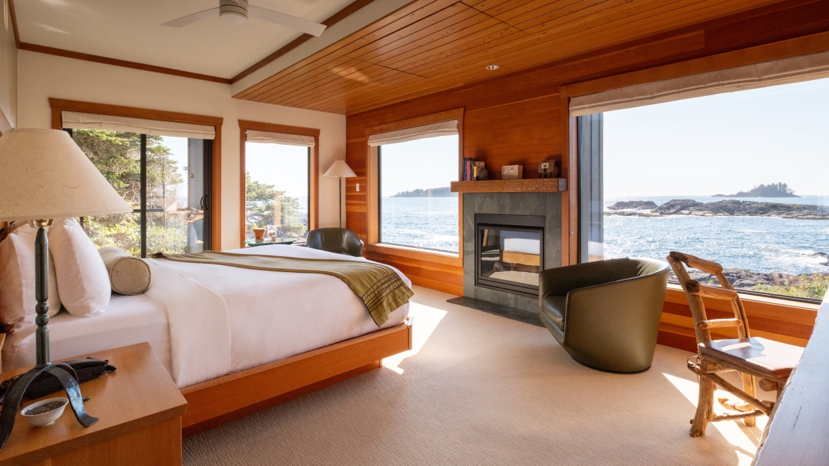 U verblijft vier nachten in het iconische Wickaninnish Inn, inclusief ontbijt, prachtig gelegen tussen oceaan en regenwoud.